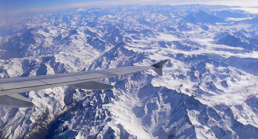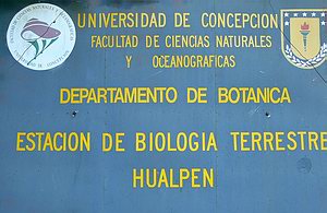 (Click on photos to enlarge)Flying from Buenos Aires, crossing the snow-capped Andes Before landing at Santiago. Signpost of the Estación Biológica at Huelpen, some 15 km west of Concepción.