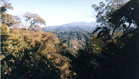 En algunas curvas mágicas se presentaban fabulosos panoramas, bellísimos paisajes aéreos de la selva de montaña. Se divisaban loma tras loma de vegetación tupida y verde que, por efecto de la distancia, viraba imperceptiblemente hacia tonos más azulados y grisáceos - pero siempre impresa por la inconfundible textura de la arboleda. Algunas lomas se extendían hacia arriba, constituyendo verdaderas montañas ¡Qué espléndido! Típico paisaje desde el camino Y sin embargo, ¡cuánto mejor sería este paisaje si por ese gigantesco espacio alfombrado de selva, y demarcado por cerros igualmente verdes, pudiésemos observar el majestuoso vuelo de un ave rapaz! Me refiero desde luego a las hermosas e infrecuentes rapaces selváticas. Aquí, tal como ocurre hoy en todas las selvas del mundo, esas grandes aves son una rareza extrema. Pero durante estos cuatro días contábamos con la probabilidad cierta de ver tal vez un individuo, tal vez dos. ¡Que aparezcan de una buena vez! Durante la caminata la atención de los observadores se focalizaba en las ramas de los arboles y enredaderas que flanqueaban el camino, atentos a cualquier movimiento sutil que pudiese delatar la presencia de un pequeño pajarito. Este era ciertamente el frente de observación más productivo. Pero había otro frente no menos importante: el de las magníficas rapaces, que generalmente se observan en vuelo alto. El grupo tenía que dejar recursos disponibles que permitiera detectar su sigiloso paso por los cielos, y sin perjudicar la observación de las aves arbóreas. El monitoreo sería un permanente trabajo de equipo que debía transcurrir en forma totalmente automatizada. Fui testigo, y protagonista a la vez, del operativo que surgió espontáneamente en el grupo para llevar a cabo dicha detección. Tal es así, que me atrevo a describir ahora este elaborado mecanismo. Sin saberlo, cada uno de los observadores habíamos puesto en marcha un cronómetro biológico interno, activado por el inconsciente, que contaba el tiempo por medio de alguna misteriosa y desconocida onda cerebral. Esta suerte de "despertador natural" se activaría repetidamente según el intervalo fijado por cada observador. De esta manera, cuando funcionábamos como grupo, el azar determinaba la casi permanente atención de al menos uno de sus miembros. En forma aparentemente aleatoria y asincrónica, los observadores éramos "llamados" a cumplir el mandato. El cronómetro tenía la virtud de despertarnos de cualquier actividad en curso, sea ésta la que fuere, para avisarnos que había llegado el momento de echar un rápido vistazo al "más arriba", en lo alto del cielo: era hora de "escanear" el firmamento para detectar (o descartar) la presencia de alguna posible rapaz. La siempre elusiva rapaz... Lo notable es que no existía distracción física ni mental alguna capaz de demorar o interferir con su funcionamiento. Tan fuerte era su llamado que hasta era capaz de interrumpir una observación interesante. Y el sistema nunca cesaba de operar: terminada la caminata seguía funcionando y, como se verá, no se detenía ni siquiera cuando comíamos. Solo se apagaba de noche. Se podrá deducir que, fijando un intervalo de tiempo más bien corto entre cada "miradita", el observador obtenía como beneficio una mayor probabilidad de encontrar una rapaz en vuelo, pero seguramente arriesgaba perder el avistaje de un hermoso picaflor o descubrir el movimiento sigiloso de un Tingazú entre las ramas. Confieso que, a la larga, las tan repetidas miradas al cielo producían todo tipo de estiramientos musculares del cuello, calambre de nuca y desgaste de las articulaciones cervicales. ¡Creo que esto da una idea de la cantidad de veces que algunos de nosotros miramos hacia arriba! Sospecho que los observadores que utilizaban los intervalos más cortos eran los que, secretamente, se desvivían por ser ellos quienes pasarían a la historia por dar el aviso al resto del grupo, emitiendo magnánimamente esa mágica voz de alerta: ¡¡¡¡RAPAZ!!!! De esta manera el grupo avanzaba por el camino. Cada pocos segundos uno cualquiera de los integrantes echaba un rápido vistazo en lo alto, contra las colinas distantes, y también hacia atrás, con la esperanza de ver una manchita oscura en vuelo. No se necesitaba un "coordinador", ya que la "conciencia grupal" garantizaba que siempre había alguien ocupándose. El grupo funcionaba entonces como una sistema de radares de tráfico aéreo con turnos rotativos en estado de alerta. Estas expresiones - posiblemente algo magnificadas - que estoy utilizando para describir el accionar del grupo es indicativo de las "ganas" que había para ver algún águila. Tal vez sorprenda que nuestra supuestamente apacible y somnolienta actividad de observar aves incorpore esta conducta algo ansiosa y obsesiva, pero es sólo el reflejo de una situación muy seria: la muy baja densidad de las poblaciones de rapaces, causada por la caza, el desmonte y otras actividades humanas, significaba que las probabilidades de éxito durante nuestra corta estadía eran tremendamente bajas. Tan escasos son estos avistajes, que la mayoría de los integrantes del grupo - incluso algunos que ya tenían en su haber varias visitas a Calilegua - nunca habían logrado observar las especies de mayor porte. Por eso, si deseábamos coronar nuestra estadía con al menos un avistaje interesante, había que advertir la presencia - e identificar - toda rapaz que ingresaba en nuestro espacio aéreo. No podíamos permitir que la gloria se deslice secretamente a nuestras espaldas. Por su puesto, casi todas las veces el esfuerzo de observar al cielo fue en vano. Pero en algunas oportunidades había algo volando... Entonces la situación cambiaba rotundamente. Será curioso, pero para el observador que ha sido bendecido con la afortunada oportunidad de ser quien detecta primero la presencia de una silueta en vuelo siente, durante los primeros instantes de la observación