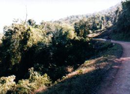 A eso de las tres de la tarde comenzamos a partir en grupos por el camino de barro colorado que surcaba a media altura por las colinas. Sobre la izquierda: montañas altas con selva. Sobre la derecha: precipicios empinados con selva. En mi caso comencé caminando con un grupo, pero pronto me quedé solo, distraído por las aves. Buscaría ahora resolver personalmente los desafíos de identificación que la suerte iría presentando. Ya había tenido dos días de iniciación asistida, y había llegado el momento de largarme solo. Si veía un pajarito, trataría de identificarlo sin otra ayuda que lo indicado en mi Guía de Aves. Recorrí el camino chocho de la vida...