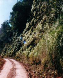 Miércoles 26 a las 7:00 El gallo había cantado más temprano hoy. Con su característica diplomacia, Hernán, a la vez guía y vocero oficial de los safaris de la AOP, nos había indicado la noche anterior que hoy las actividades debían comenzar más temprano. Tendríamos que viajar casi 2 horas en el micro, siempre por el mismo camino, hasta el Monolito, a 1.700m de altura, y de nada servía llegar a ese lugar privilegiado a las 11 de la mañana, por que ya a esa hora no habría pajaritos. Había que madrugar un poco más. Germán, por su lado, en su sutil metodología de persuasión, aclaró que los organizadores del campamento desechaban terminantemente utilizar técnicas colectivas de resucitación matinal. Por ejemplo, no habría campanadas, ni toque de clarín, ni las conocidas voces de: "¡¡¡ARRIBA!!! ¡¡¡YA ESTA EL DESAYUNO!!!". Al menos no oficialmente... Creo que Germán dejaba la puerta abierta para que algún voluntario emita un "bostezo matinal" muy, pero muy exagerando... No oí ningún bostezo, pero sin embargo a las 6:15 fui arrancado de mi sueño por ruidosos y fuertes golpes. Eran los sonantes y retumbantes hachazos de algún ayudante del campamento. ¿Germán, tal vez? Quizá deba agradecer al hachador, por que sino hubiera perdido no solo el desayuno, sino la excursión. Había que estar saliendo a las 8 de la mañana. Bueno, 8:30. Por que a esa hora pasaba un colectivo "charteado" que nos subiría al Monolito. A las 8:45 todavía había algunos rezagados que llegaban despreocupados al estacionamiento, donde estaba la "parada" del colectivo. Una vez allí, sorprendidos, casi espantados, notaron que la parada estaba desierta. ¡No había nadie! ¿Dónde están todos? "Nos dijeron 8:30. ¿Qué horas es?" Sus rostros se marcaron con expresiones de incredulidad y desilusión por haber perdido el colectivo hasta el Monolito. Pero en realidad solamente habían caído en nuestra trampa. Es que con gran picardía nos habíamos escondido en silencio detrás de nuestro micro de larga distancia, que seguía estacionado allí. Pero, ¿y el colectivo? Ya eran las 9:15 y no aparecía. Para entonces Germán, que había coordinado el charter y tanto había insistido con madrugar, temía ser linchado. Bueno, al fin llego nuestro "charter". Esta vez me senté en la ventanilla del otro lado. Pero fue un castigo mayor, por que los precipicios aquí eran más espantosos aún. No entiendo como el colectivo tomaba curvas pisando los mismísimos bordes de barrancos embarrados, en las que precisamente el barro parecía ser el único sustento estructural del camino. En las curvas podía apreciar como esas mismas banquinas, similares a las que veníamos pisando, habían cedido. En muchos casos la parte del camino colapsado yacía ahora reducida a un puñado de tierra aferrado a laderas casi verticales. Más adelante consulté al chofer si alguna vez hubo un vuelco o caída de un vehículo por el precipicio. "No", me respondió. Tal vez fue una mera sugestión, pero parecía que la altura me iba afectando. El camino seguía serpenteando por las laderas, tan sinuoso como había sido ayer el arroyo Negrito: curva tras curva. Por continuar siempre en ascenso me sugestionaba aún más, y sentía un leve mareo. Habíamos pasado ya Mesada, y más arriba comenzábamos a ingresar en otro tipo de vegetación: el "Bosque Montano", donde la maraña de arbustos y lianas comenzaba a ceder su lugar. Ahora eran musgos colgantes, denominados "barba de viejo", que comenzaban a adornar el bosque. Estas decoraciones navideñas cubrían cada vez más todas las ramas de los arboles, ahora casi sin hojas por la época del año. Sus troncos y ramas expuestas se revestían entonces con esas gasas colgantes de tonalidades ocre-oliváceas.