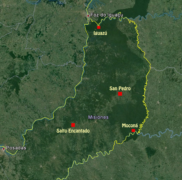 Para explicar esto tenemos que refernirnos a la historia y distribución geográfica de nuestro país y de los vecinos. Para la Argentina, Misiones es una provincia distante de Buenos Aires. Todo el desarrollo agroganadero se realizó en zonas más fáciles de desarrollar, donde el acceso era mas fácil, más cerca - en una palabra, todo maás fácil y con menos problemas. En cambio para Paraguay y Brazil la selva era una extensión natural, que se podía aprovechar, destruir y sembrar. Solo se aprecia en Brazil dos áreas bien verdees, al NE de Oguazú y cerca de Moconá. Son reservas naturales con el bosque intacto. Pero todo lo demás es soja y otros cultivos, y ganadería. Ya no hay más selva.