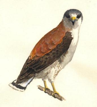 Día 2: Desde Pedro Luro hasta Comodoro Rivadavia (1.100 km.) Hoy dedicaríamos el día a cubrir distancia. Por suerte habíamos planificado para cada jornada de viaje un aliciente, un descanso, y hoy trataríamos de estar un par de horas en una playa. Había otros deleites también: hoy, al llegar a Sierra Grande, en la provincia de Río Negro, comenzaríamos a disfrutar uno de los más deliciosos placeres de la Patagonia: el de cargar nafta a mitad de precio – aún siendo que las distancias aquí son tan grandes que el tanque se consume a seco en muy pocas horas. Hoy se presentaría de nuevo ante nosotros esa llanura de olas gigantes, cubiertas de arbustos de ocre, gris y oliva: el paisaje patagónico: Indómito... Atrapante... Hoy cruzaríamos tres de los ríos más importantes que fluyen desde la cordillera. Cruzamos el primero, el río Colorado, a las 8:30, cuando apenas salimos de Pedro Luro. Según algunas definiciones, ya estábamos formalmente en la Patagonia, pero, para que el paisaje lo confirme del todo, quedaba por delante un tramo largo de ruta, flanqueado por campos cultivados y salpicado de montes naturales, hasta más allá de Viedma. Llegamos a Carmen de Patagones. Allí la Ruta 3 cruza el majestuoso río Negro por un enorme puente de pocos años de existencia. Desde el mismo, los techos de algunas casas se dejaban ver entre la densa arboleda que crecía con fuerza a los costados del curso, que también cubría una gran isla instalada en el medio del cauce. El camino nos había acostumbrado a un paisaje más polvoriento, y al ver estos verdes tan oscuros nos brotaba una sola palabra: ¡oásis! Y desde este puente, el anchísimo río que fluía lento, pero implacable, hacía honor a su nombre: sus aguas límpidas que invitaban a un baño refrescante se veían totalmente negras. Me pregunto por qué el cielo no se refleja en el río Negro… El camino ahora circulaba entre campos naturales, con espinillos, chañares y otros arbustos. Se observaban algunas bandadas de los grandes loros barranqueros, y cada tanto nos alertaba el fugaz paso de un par de alitas blancas y negras: ¿Fue una Monjita Blanca o una Monjita Coronada? ¡Que ganas tenía de detenerme para buscar aves en estos montes! Pero no había tiempo para todo - tal vez podría hacerlo en el viaje de vuelta… Al llegar al cruce con el camino que lleva al puerto de San Antonio Este doblamos hacia el mar. La costa estaba a 15 km., 14 km., 13 km.… Nos anticipamos poniéndonos crema para el sol, colgando los binoculares, y… eligiendo una amplia bolsita de plástico, adecuada para recibir el fruto de la primera colecta de caracoles en casi un año. Al llegar a la costa doblamos hacia el este por camino de ripio, y bordeamos el mar hasta llegar a una playa un tanto más alejada del pavimento. En la primera loma detrás de las playas, un custodio: nuestro primer Aguilucho Común, en gallarda pose. Parecía advertirnos que esta era tierra suya, y que si deseábamos usufructuar de ella, debíamos comportarnos según las normas de la Constitución Natural: nada de bochinche, nada de basura, nada de fuego… Acuarela de Aguilucho Común (Buteo polyosoma) por A. Earnshaw (En base a fotos de Rodolfo Suarez) El mar estaba tan azul que parecía teñido. Pero una brisa fresca aconsejaba no bañarse hoy. Así que caminamos por la playa, buscando cangrejos, aves y caracoles. Vimos un grupito de chorlos que recorría la playa. Estaba conformado por cuatro especies diferentes: unos eran los “Doble Collar”, que con sus trajes de pecho barrado parecían un ejército de sobrinitos de aquel célebre personaje de caricatura: Clemente. Otras dos variedades eran casi indistinguibles entre sí, salvo por sus voces: el Playerito Rabadilla Blanca y el Unicolor, mientras que el cuarto era el Playerito Blanco, que no habíamos visto en años. Volvimos al auto. Luego de traspasar el arenoso, húmedo y “perfumado” contenido de mi bolsa con caracoles a un recipiente más duro - rito que habría de reiterar muchas veces en este viaje para evitar roturas de las valvas, muchas de ellas frágiles – volvimos al camino. Ahora había que manejar y manejar. El dulce del día ya estaba consumido. Y manejamos… Pasamos San Antonio Oeste y Sierra Grande. Más tarde, gracias a un brevísimo acercamiento que hace el camino al borde de la meseta, divisamos desde la altura, y solo por un instante, a la ciudad de Puerto Madryn. Siempre imponente, custodia el Golfo Nuevo bañado por el mismo mar pintado. En Trelew cruzamos otro río de gran importancia para la zona: el Chubut, que provee de agua potable a esta ciudad, a Rawson y a Madryn. Aquí adquirimos algo para comer en ruta, y seguimos manejando. Cualquiera puede llegar en auto hasta Trelew. Pero emprender los monótonos 400 km. hasta Comodoro Rivadavia requiere una cierta dosis de coraje, y un expreso deseo de aventura. Pero ni siguiera el entusiasmo que provocan estas emociones puede resistir un camino tan recto, a veces hasta aburrido, así que el conductor debe estar atento al riesgo más serio. ¡Sonámbulos abstenerse! En este tramo seríamos testigos de la desaparición del monte norpatagónico y el surgir de las estepas, aquellos pastizales secos que abarcan gran parte de la “Patagonia Sur”. El anochecer llegaría hoy bastante más tarde, y contábamos con este mágico efecto astronómico para compensar el tiempo que habíamos dedicado esta mañana para pasear por la playa. A casi 100 km. de Trelew hicimos una parada "de rigor": en esta zona bifurca un camino de ripio hacia el noroeste, y nos internamos por él unos 400 m. Aquí, hace cuatro años, habíamos visto la infrecuente Monjita Castaña. Y al llegar al alambrado la vimos nuevamente: una pareja. Se alejaron casi enseguida, pero las pudimos ver bien. Salimos del auto y por media hora recorrimos los arbustos, sin detectar más aves. Recién al final apareció una Diuca Común: tan común es en la Patagonia, y sin embargo no
