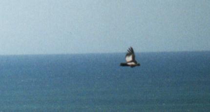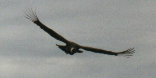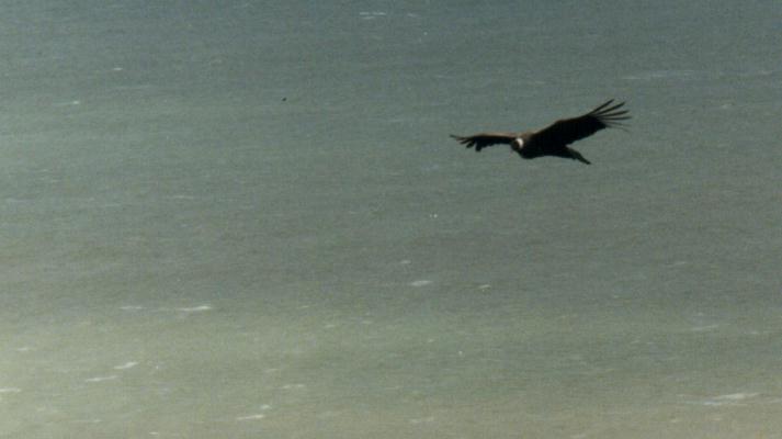 Decidimos desmontar para almorzar. Comimos mientras charlábamos con nuestra guía, aprendiendo de las vicisitudes de la vida lejos de todo. Cada 15 segundos observábamos el veloz paso de unas golondrinas que, con gran maestría a pesar de sus pequeñas alas, circulaban entre los arboles y nuestro improvisado comedor en declive, volando a medio metro del piso. Mostré a Mariana que se trataba de dos especies distintas: esta era la Patagónica, con su evidente rabadilla blanca, y aquella era la Barranquera. Pero pronto pasó una sombra. Eran los Cóndores de nuevo, que en grupos de 2 o 3 sobrevolaban la pendiente del acantilado Un extraordinario lugar para tomar fotos, puesto que las aves pasan muy cerca del borde, permitiendo tomas desde arriba, ideal para captar el blanco del lado superior de sus alas. ¿Y como fondo? ¡Mar! ¡Que extraña combinación! Aproveché para darme el lujo de captar fotos de Cóndores con una lente gran angular de 24mm, mostrando así no solo el ave, sino también el curioso hábitat elegido por estos individuos. Pero una vez que puse el teleobjetivo para hacer tomas más cercanas, había perdido las mejores pasadas, así que no logré fotos ideales.